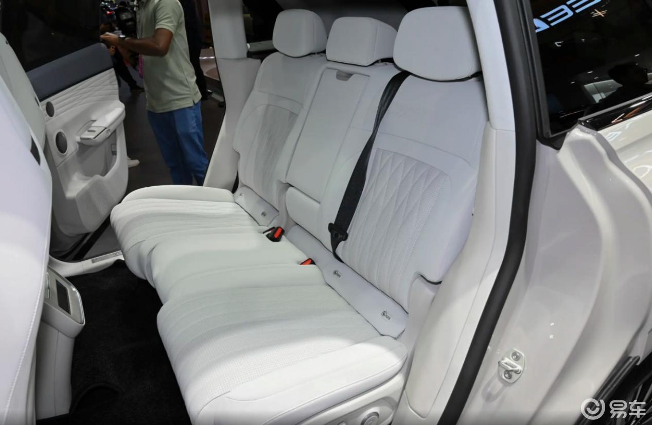 座椅采用微绒哑光真皮包覆,主驾支持8向电动调节,副驾可选装零重力座椅,缺点是没有标配加热/通风功能。悬挂采用前双叉臂+后五连杆结构,但缺少高配车型的IAS单腔智能空气悬架。