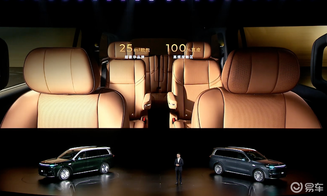 车内提供6座、7座版,88%得房率,空间宽敞。座椅采用半苯胺头层真皮包裹,带来百万级豪车坐感,同时二排右侧120度真零重力座椅,还有同级唯一车规级电动开合冷暖冰箱,整车豪华舒适看得见。