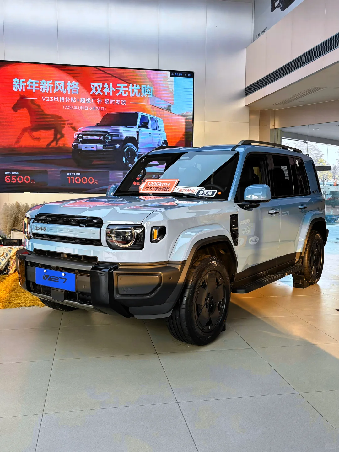继深蓝G138、仰望U8L等增程式越野车上市后,又一增程硬派越野即将到来。iCAR V27实车已经到店,搭载1.5T增程系统,可选四驱动力,最大功率335千瓦,纯电续航可达210km。新车还将搭载猎鹰700辅助驾驶系统,预计将于一季度正式上市,下面抢先了解一下。
