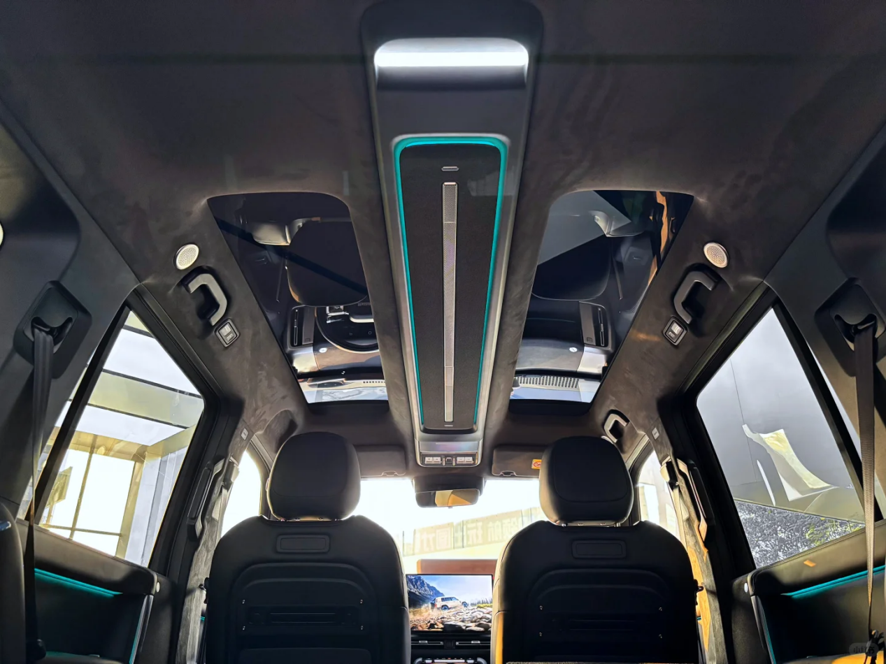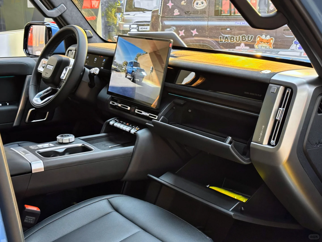 车内设计十分简约,平直的中控台两侧对空调出风口和饰板进行镀铬处理,显眼的悬浮式中控屏匹配最新车机系统和高通8295P芯片,有着不错的人车交互功能。主驾配备圆形方向盘,前端拥有嵌入式仪表盘,比无仪表屏的iCAR V23要更符合传统用车习惯。