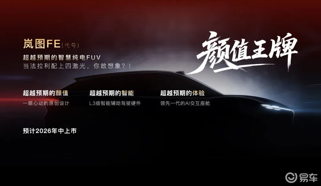 至于那款被称为“颜值王牌”的“四激光法拉利”,其定价显然将对标售价区间为25.35-32.99万元之小米YU7。如此看来,岚图汽车2026年的新品定价几乎都在25万元以上,明显高于目前售价最低的岚图知音(19.69万元起售),其全产品线均价也将进一步上扬。