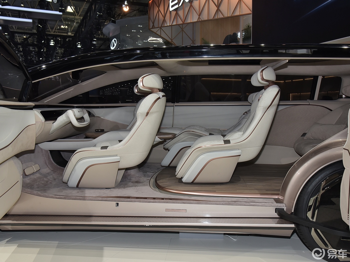 从车侧看,该车显得很长、很流畅,一看就拥有很大的车身尺寸。那么,新车的长宽高会是多少呢?据悉,它的长度为5米3,宽度为2米,高度为1米9,轴距为3米2,车身尺寸和理想MEGA在伯仲之间,车内的三排座椅都有很宽敞的乘坐体验。不过有一点让我很不理解,就是电动侧滑门向后滑动的距离很大,我觉得存在安全风险。可能正式量产车型会对这方面进行重新优化吧。