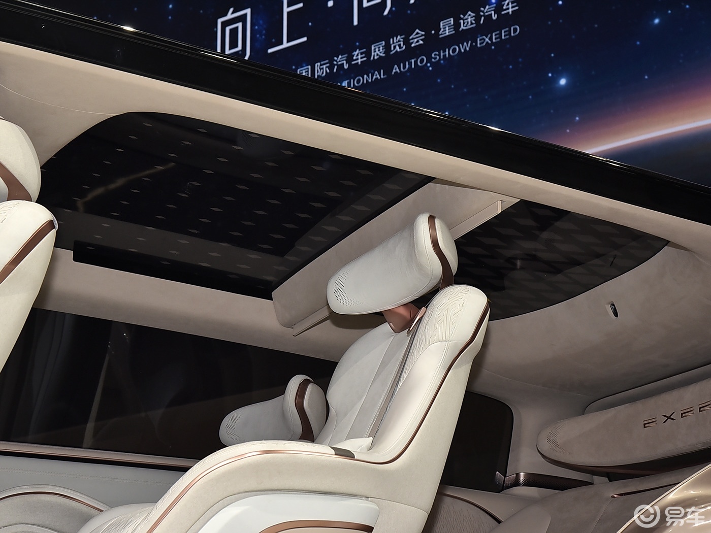 对于一款高端MPV来说,最重要的还是座椅舒适度和空间宽敞度,而星途星纪元E08全车都是一体式座椅,形似家里的高档大沙发,只不过前两排都是独立座椅,第三排是一个组合座椅。根据设计来看,前两排座椅应该都可以180度旋转,座椅空间十分灵活。头顶上,则是两段式天窗,两段天窗之间还有投影幕布,这个设计和问界M9以及享界S9十分相似。