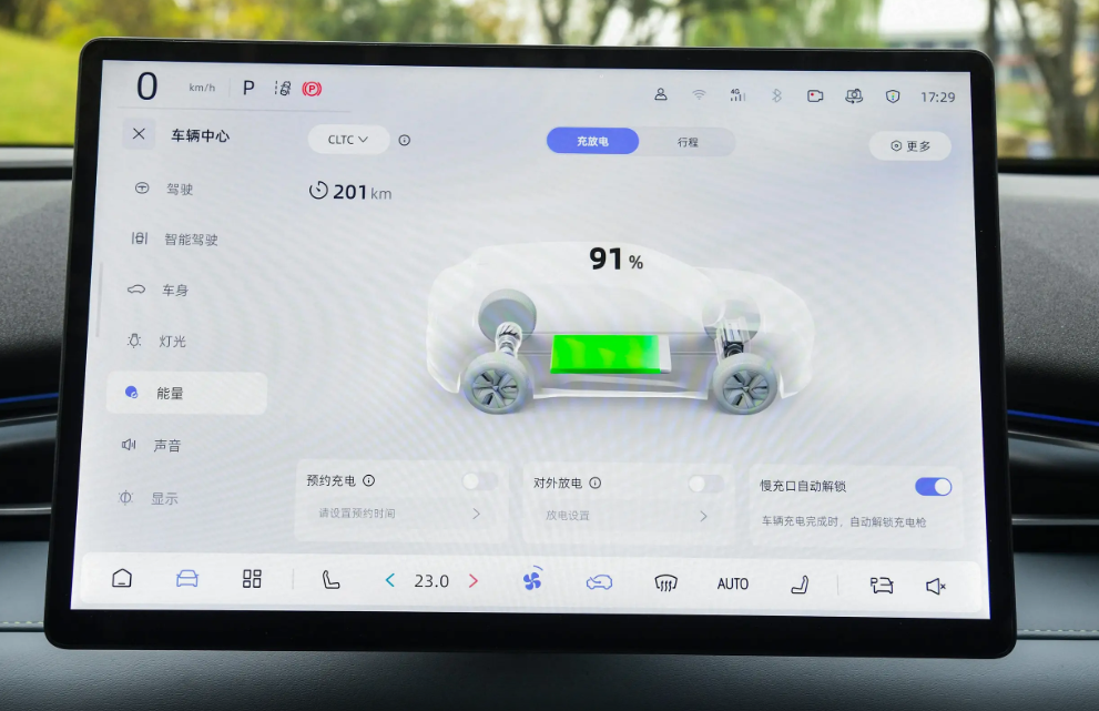 无论增程还是插混,电池、续航都属于关键一环,这将直接影响后续用车体验以及用车成本。先来看深蓝S05,它的电池来自宁德时代,使用了金钟罩电池技术,容量27.28kWh,纯电续航200km(CLTC),日均通勤25-35km左右,基本可以实现一周一充,纯电模式下每公里成本大约5分钱。